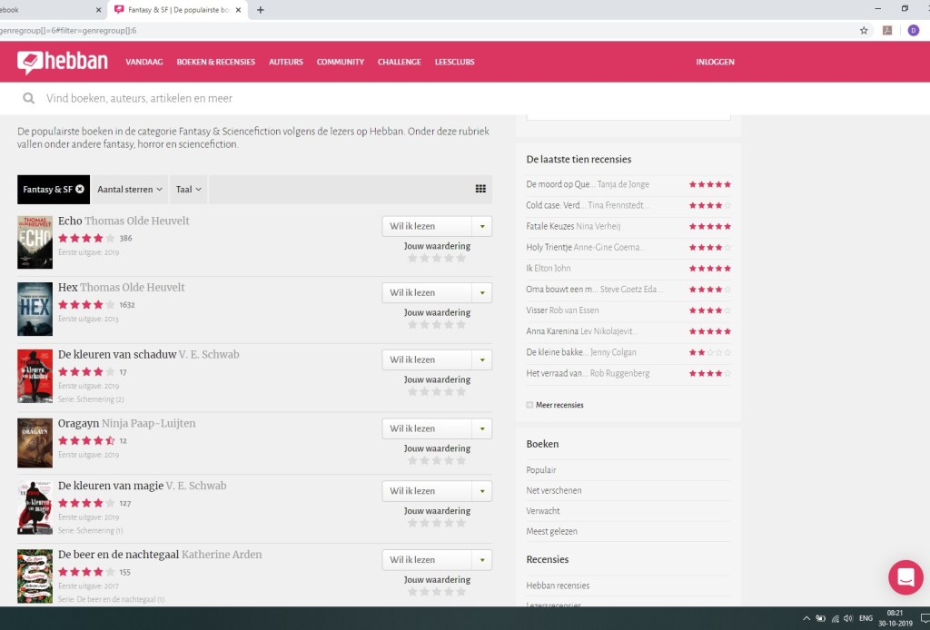 Maar dat is niet het enige. Hebban werkt met een ranking. Wordt er veel over een boek gepraat, dan stijgt dat boek in de ranking. Vanochtend besloot ik eens te gaan kijken waar Oragayn nu ongeveer staat. En kijk eens wat een mooi gezelschap! In de categorie Science Fiction & Fantasy staat Oragayn – op dit moment – op plekje 4!