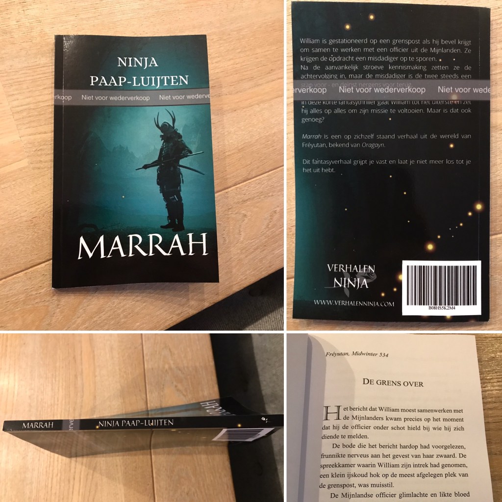 De papieren editie van Marrah komt uit via Amazon. Een publicatiedatum heb ik nu nog niet – die volgt heel binnenkort. Als alles goed gaat, zal na een tijdje het boek ook besteld kunnen worden via Bol. Ik ga ervoor zorgen dat je het ook kunt voorbestellen bij mij, maar let op: bestellen via mij gaat alléén tijdens de voorbestellingen en is daarna niet meer mogelijk! Dus houd deze website en/of Facebook in de gaten, want natuurlijk houd ik je van de voortgang op de hoogte.