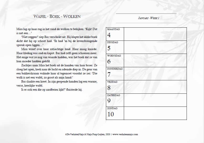 De weekkalender 2021 is een kalender vol verhalen. Als jij van fantasy en sci-fi houdt, graag elke week een nieuw verhaal leest en ook nog je afspraken kwijt wilt kunnen, dan zit je hier goed!