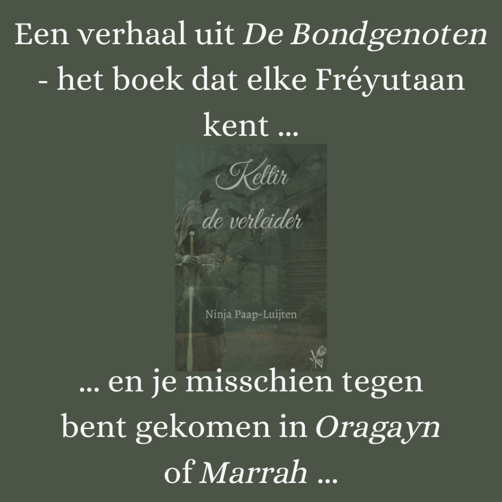 Maar … hoe zit het eigenlijk met dit verhaal? Waar komt het vandaan? Wat is de link met andere boeken rondom De Koninklijke Garde? Nou … daar help ik je mee. Want dit is niet zomaar een verhaal. Dit is een verhaal uit De Bondgenoten – het boek dat Vesaljev krijgt in Oragayn. Het boek dat elke Fréyutaan kent … en nu kun jij er dus een verhaal uit lezen! Verteld door Vesaljev.