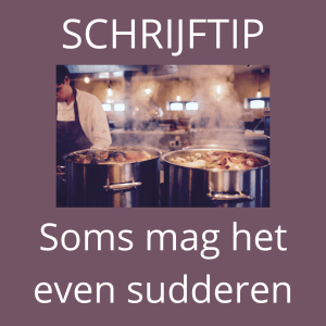 Voor mij is ‘sudderen’ van toepassing op verhalen waar ik wel degelijk aan blijf denken. Ik houd dus het vuur onder de pan aan, in gedachten, zou je kunnen zeggen.