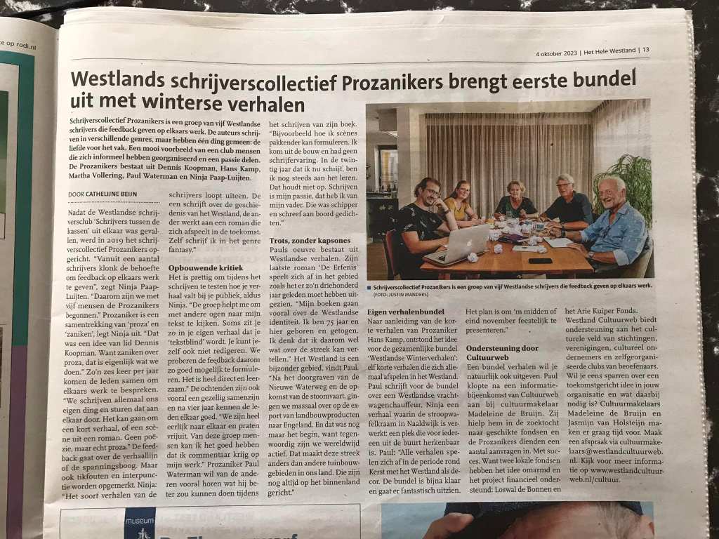 De plaatselijke krant, Het hele Westland, plaatste deze week een interview online. En ja, inderdaad: er komt ook een verhalenbundel van ons uit! Daar zijn we op dit moment druk mee bezig.