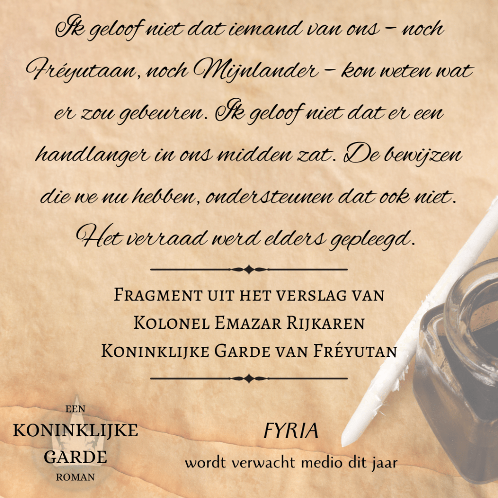 In Fyria kom je stukjes tegen uit de verslagen die Rijkaren schrijft. Gardeleden hebben altijd schrijfmateriaal bij zich. Er wordt zelfs weleens gezegd dat de Garde de papierfabrieken goed draaiende houdt…