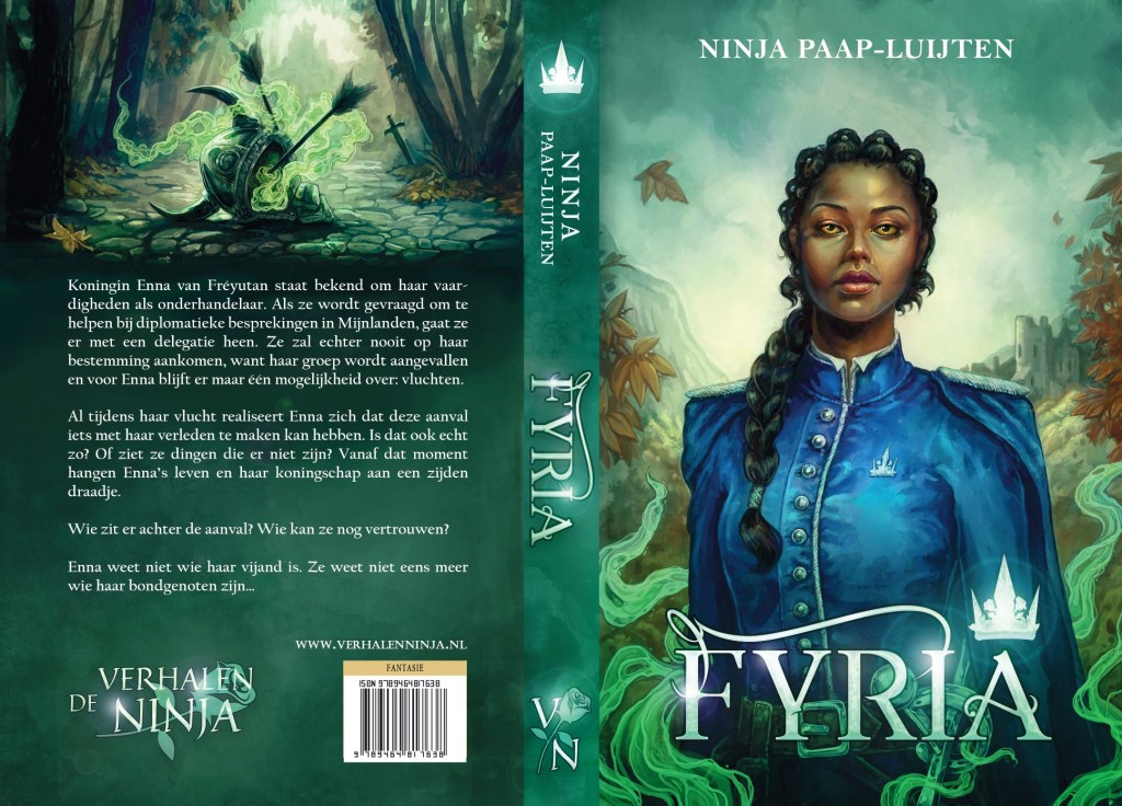 Het is zover! Hieronder vind je de cover van Fyria. Op de voorkant vind je een indrukwekkend portret van koningin Enna. Op de achterkant vind je een sfeerbeeld… In Fyria komt Enna in grote moeilijkheden. Kan ze de problemen allemaal aan? Of gaat ze eraan ten onder? En wat voor gevolgen zal alles hebben voor haar leven en voor haar koningschap?